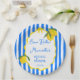 Ciao Bella Dolce vita Lemons blue stripes Italian bridal shower personalized paper plates template, citrus lemons blue stripes bridal shower monogrammed paper plates; summer Italian bridal shower printed paper plates, vintage Italian bridal shower paper plates, wavy border funky bridal shower personalized name paper plates