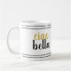 This clean white Ciao Bella mug is outlined with black and features gorgeous gold details.
