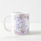 Ciao Bella Personalized Lavender Pink Lilies Mug. Ciao Bella is Italian for "Hello Beautiful". This gorgeous new white mug features a flowing lavender script surrounded by lovely watercolor lilies in shades of lavender and pink. The center area of the mug (between the right and left sides) is personalized. This is a great gift for mother's day, birthday, or Easter!