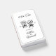 Toast to love and celebration with this sophisticated custom matchbox featuring the Italian "Cin Cin" cheers greeting alongside charming illustrated champagne glasses with decorative bows, all framed by an elegant striped border in classic black and white. Perfect for weddings, engagement parties, or anniversary celebrations, this matchbox combines the joy of toasting with timeless design elements and customizable text space for names, creating a refined party favor that captures the spirit of celebration and the tradition of raising a glass to love and happiness.