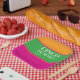 Simple and modern green, pink and orange party supplies
