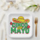 These Cinco de Mayo paper plates feature a big yellow sombrero with the words "cinco de mayo" in a green decorative font.