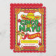 This Cinco de Mayo themed invitaition is the perfect way to set the stage for your Mexican fiesta! At the top is a large sombrero with the words Cinco de Mayo Fiesta below. The scalloped border is reminiscent of papel picado flags that hang from the streets of Mexico. Customize this invitation with all your fun party details. Colors include red, yellow, orange, green and black.