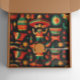 Cinco de Mayo. Mexican bright cartoon pattern tissue paper in black, yellow, orange, red, green colors.