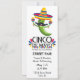 Festive holiday invitation for Cinco de Mayo or any Mexican-themed event a green chili pepper with a mustache wearing a sombrero and playing the maracas on one side and Mexican folk art on the back.