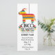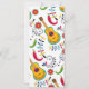 Festive holiday invitation for Cinco de Mayo or any Mexican-themed event a rainbow donkey pinata on one side and Mexican folk art with guitars and peppers on the back.