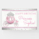 Cinderella birthday party banner with beautiful pink princess carriage on a pretty pink and silver background. This pretty Cinderella princess birthday party banner can be easily customized for your event by simply adding the text of your choice.