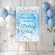 Cinderella Princess birthday party welcome sign with beautiful glass slipper and diamond tiara on a fancy light blue fairy tale background. This princess birthday party welcome sign is easily customized for your event by simply adding your text.
