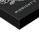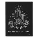Simplified outline of a castle, pumpkin carriage, and roses that reads "Midnight's Calling".