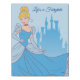 Cinderella in her blue ball gown with the castle silhouette in the background.