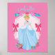 Cinderella in an orante blue frame in her magical dress accompanied by her bird friends as well as Gus and Rufus.