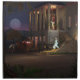 The glass coach waiting for Cinderella in front of the castle, while Cinderella has just lost the glass slipper. Notice the Prince calling from the top of the staircase!