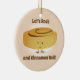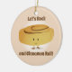 Ornament with a smiling, cinnamon roll that is standing between the words “Let’s Rock and Cinnamon Roll!”. The words can be customized.
