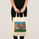 The printing came out very well, better than I had anticipated. The natural color fabric is sturdy with strong seams and comfortable handles. This tote fits easily over my shoulder. As it is filled, the bottom flattens out--very cool! I would buy this product again. This grocery tote holds a lot of groceries! The image quality was very good. The colors were a little darker than I had expected. The darkness may have been due to printing on a natural color fabric rather than on white. The cat design is attractively centered on the tote. The spirit of the design is very lively, just as it appears on the Zazzle website.