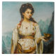 Abaking, richly detailed 19th-century painting depicting a graceful woman in traditional attire, holding a cup with poised elegance. The ornate textiles, mountainous backdrop, and classical oil techniques make this artwork a timeless piece of cultural and artistic expression. Perfect for lovers of vintage portraits, classical art, and historical decor. Ideal for wall prints and elegant home accents.