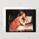 Vintage 19th century image of woman at a table studying a book on potions. Fine art by English painter John William Waterhouse.
