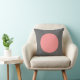 A pillow with a minimal abstract circle design in soft pink on 60% gray. The color combination is reversed on the back.