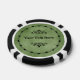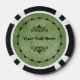 These poker chips have a circle of black barbed wire with two Gothic ornate black scrolls on a green background. Customise your text with the templates.