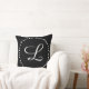 A decorative circle of dots in white and light gray forms a frame for a monogram on each side of these pillows. On one side the letter is light gray and background is black; on the other side the letter is black and the background is light gray.