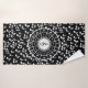 tylish fashionable music themed designer towel set in classic black and white featuring a circle of fifths wheel with white random music notes background, great additional to the music themed bathroom or en suite