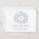 Foliage in a classic blue wreath of leaves wedding photo save the date card. Edit this save the date card with your own names and wedding date on one side and your own photo on the reverse. Other matching items and color options are available. Original leaves drawing and design by Sarah Trett for www.mylittleedenweddings.com