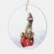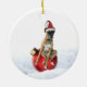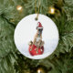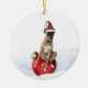 A Ceramic ornament featuring a photograph of a Brindle boxer in a Santa hat
