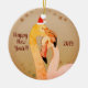 Beautiful New Year decoration with flamingo birds, Santa hat and snowflakes. Easy to add custom text and year.