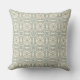 This throw pillow features a blue and brown circle pattern on a cream background.