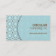 A grid of pale blue, brown and white concentric circles makes an arresting pattern on this business card that's sure to get attention. A light blue, slightly transparent circular shape holds the business name and main contact preference. The reverse reveals the pattern on the left to show off all the contact information against white on the right. A creative way to promote a marketing and communications business, a consultancy, interior designer or any creative occupation. Available in alternate colors with matching products.