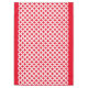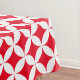 A repeat circular quarters cut out style patterned festive colored tablecloth in white on a bright festive red background or change the color of the background to tie in with your own dining color choice. Designed by Sarah Trett.