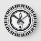 Great gift for any musician or music lover this black and white treble clef inside a round piano key design