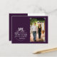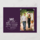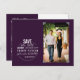 Announce your special day with this simple, modern purple save the date postcard featuring a circle with white text and a photo in gray photo corners. No need to crop your photo, just slip it in behind the purple background and you are good to go. The photo corners and purple background are removable. Custom color schemes are available upon request.