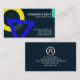A dark blue cover accentuated by an underlying formula equation numbers design alongside a yellow circle and blue triangle. At a cyan tab at the top lies your prestigious name and job title. Contact details are southwards of this at the base.