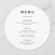 Elegant timeless menu design printed on a circle card. Place in the center of each guests' plate. You can add your own cocktail menu, special message, or photo on the back.