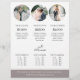 Our modern price guide list for wedding photographers features a minimalist design, stylish typography and 4 circle framed photos. Add your package details, contact details and branding. Photos by prostooleh / Freepik.