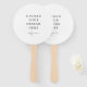 These fans were exactly as pictured. The quality is great. Perfect favor for a wedding!...I will make assembly a little easier by using a hot glue gun and finish them off with a ribbon. Beautifully printed. Crisp and clear text.