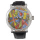 Circles And Squares-Unique Watch with Hand Painted Modern Bauhaus Geometric Art in Bold Vivid Colors