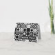 The design on this white glossy note card is a retro graphics pattern of equally sized and aligned square cells filled with solid circles and with layered circles in varying shades of gray, black and white. Cover text and inside greeting can be personalized.