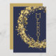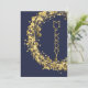 Circles and gold stars and dots on a navy blue background surround the word "MERRY" or your message on the front and your names and greeting on the back. ANY font and font color. **ADD a photo on the back along with your personalized greeting. Select Matte for heaviest paper and high definition for best print quality.