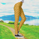 Ladies Leggings in a pattern of brown circles. Primary colours are shades of brown.