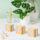 Circles and Stitches on stripes in various shades of orange from dark carrot to pastel peach. Other types of gift boxes with this design available as well as other colors.