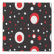 A fun retro inspired design done in red and white circles on a black background