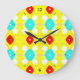 Aqua and red splodges on a yellow circly background make this vivid pretty pattern.