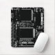 Modern design featuring a close up of a computer circuit board in black, grey and white. Mousepad with a customizable design for you to personalise with your own text, pictures and ideas. Created using an original photograph and digital techniques by Jess Perry.