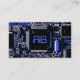 Cool design featuring a close up of a computer circuit board in blue and black. Business card template with a customizable design for you to personalise with your own text, pictures and ideas. Image created using an original photograph and digital techniques.