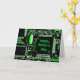 Modern design featuring a close up of a computer circuit board in green and black. greetings card with a customizable design for you to personalise with your own text, pictures and ideas. The text can easily be changed using the template provided or click the 'Customize It' button to make further alterations. Created using an original photograph and digital techniques by Jess Perry.