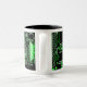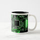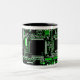 Modern design featuring a close up of a computer circuit board in green, black and white. Mug with a customizable design for you to personalise with your own text, pictures and ideas. Created using an original photograph and digital techniques by Jess Perry.
