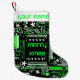 Modern design featuring a close up of a computer circuit board in green, white and black with an added festive touch. Stocking with a customizable design for you to personalise with your own text, pictures and ideas. Created using an original photograph and digital techniques by Jess Perry.