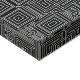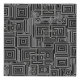 This work features an intricate, abstract pattern of nested squares and rectangles, outlined in white against a black background. The geometric forms are densely packed, with varying levels of depth created by multiple layers of lines. Some squares appear to interlock or overlap, giving the impression of a complex circuit board, digital maze, or futuristic cityscape. The overall effect is hypnotic and mesmerizing, evoking themes of digital complexity, structured chaos, and algorithmic design. It could be interpreted as a representation of information flow, cybernetic structures, or even a stylized urban landscape viewed from above.