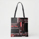 Modern design featuring a close up of a computer circuit board in red, black and white. Bag with a customizable design for you to personalise with your own text, pictures and ideas. Created using an original photograph and digital techniques by Jess Perry.